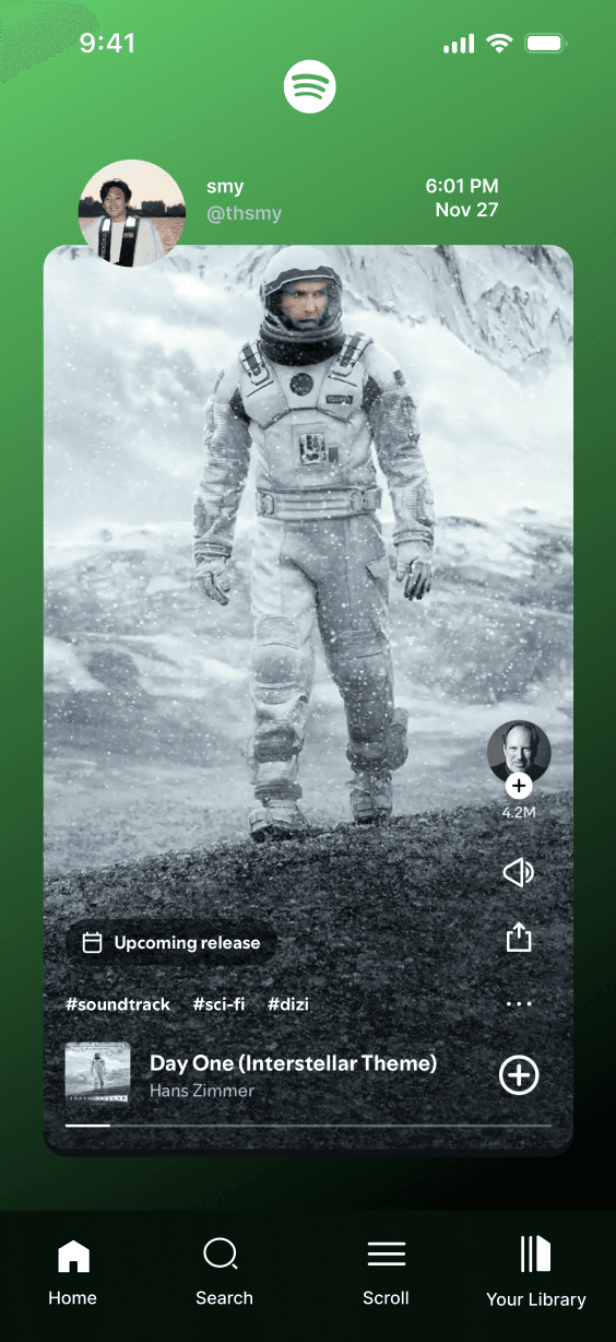 We are adding a feature on Spotify that combines the traits of a social media and a music player.